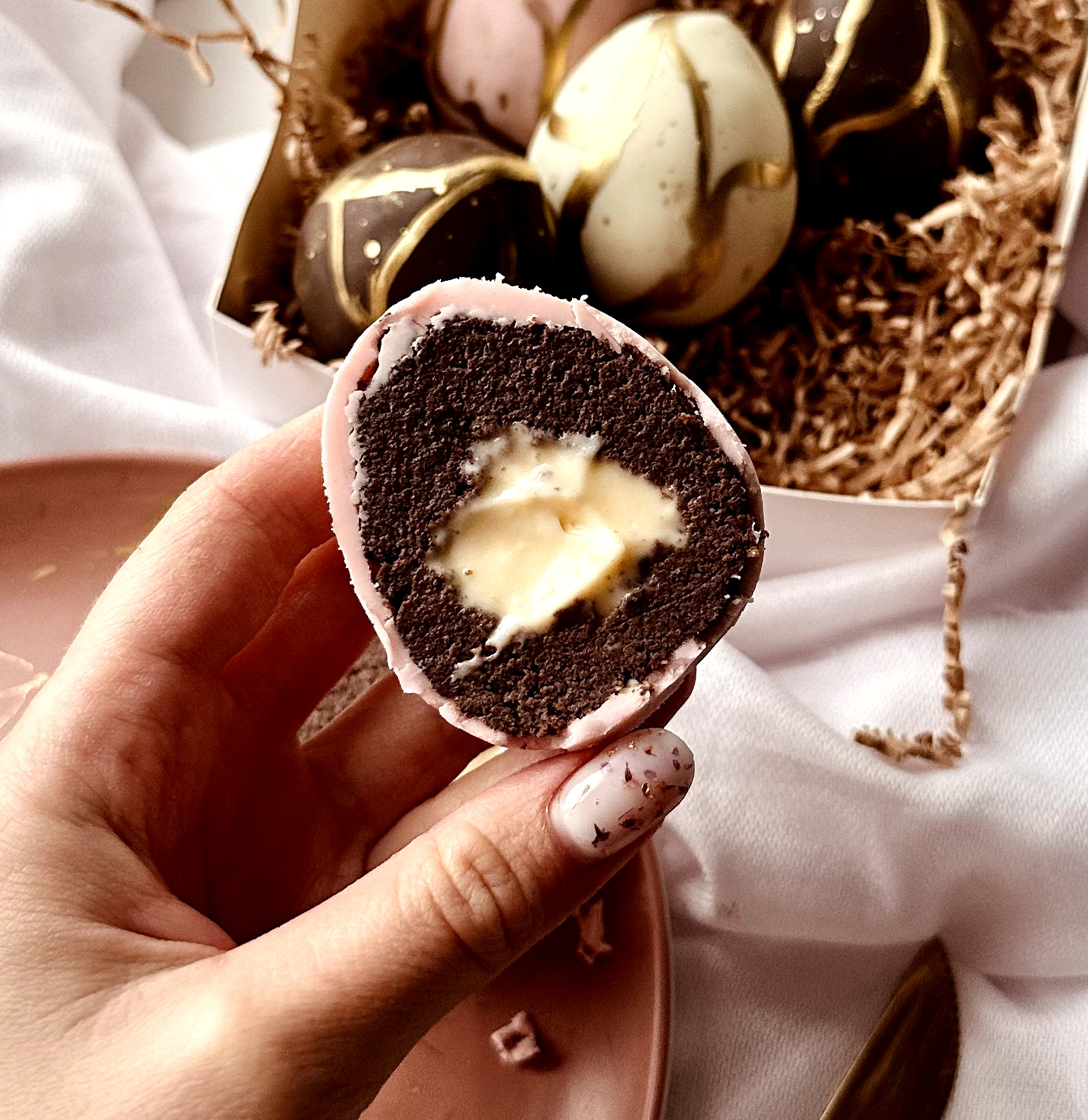 с бананом и вяленой клубникой с шапочкой из шоколадного крема,